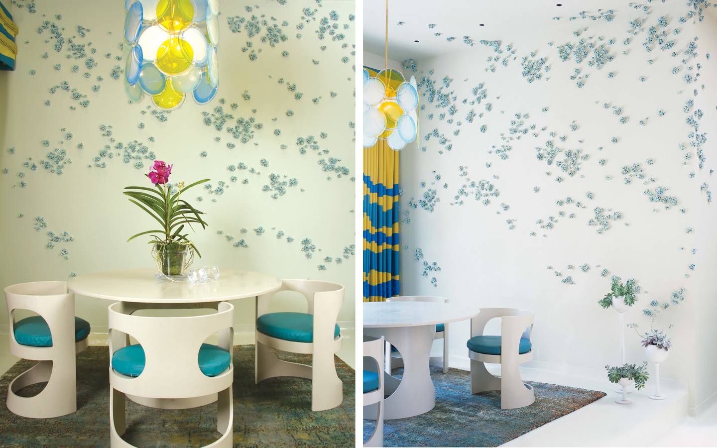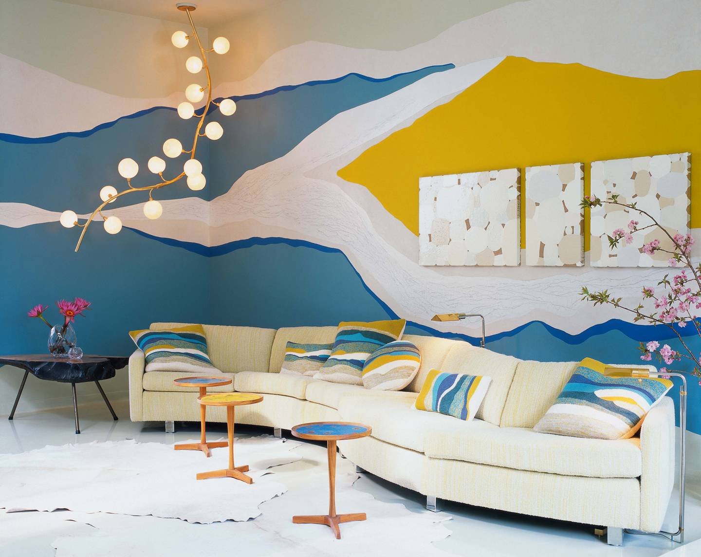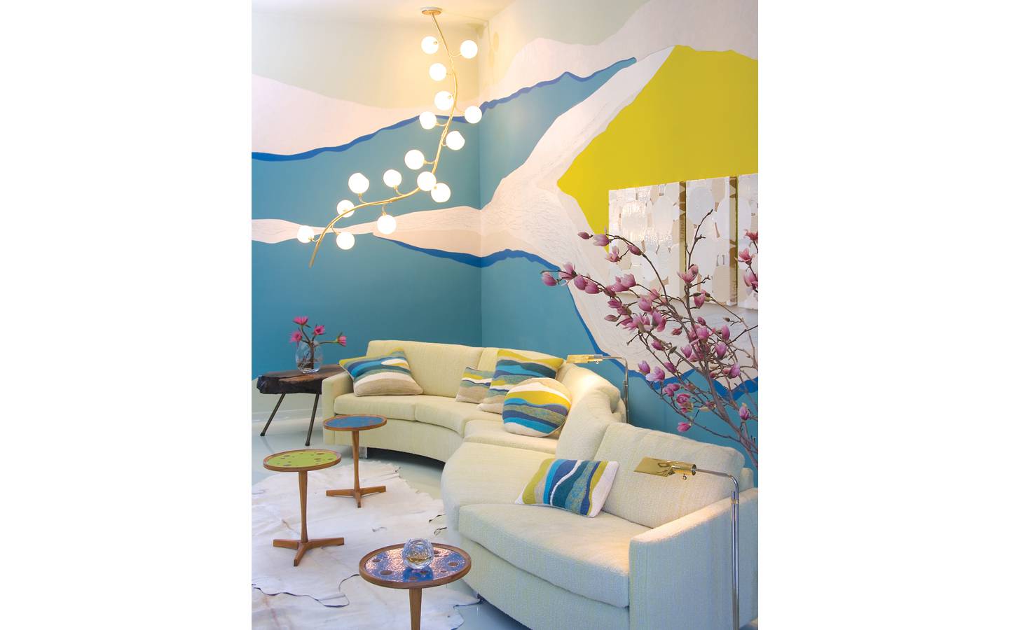 For the Kips Bay Showhouse, seven artisan collaborations yielded the likes of hand-loomed fabrics and custom enameling. Sculptor Kevin Inkawich’s botanical mobile of dried wildflowers hung from stainless wire.