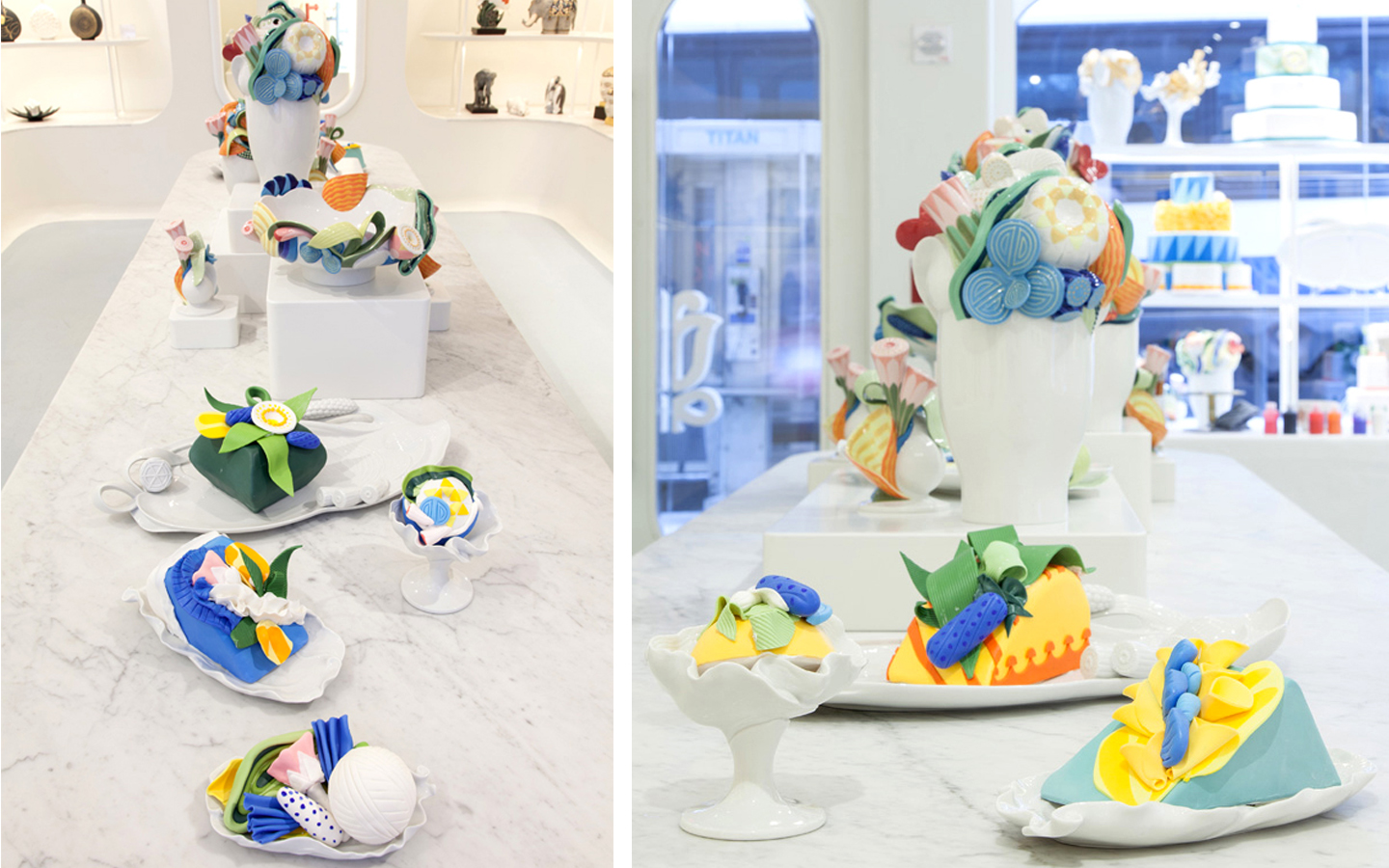 To celebrate their new Spring colors, we created a special window display and vignette for Lladró by combining spectacular porcelain pieces from their Naturofantastic Collection with colorful custom cakes designed by Carlo’s Bake Shop.
