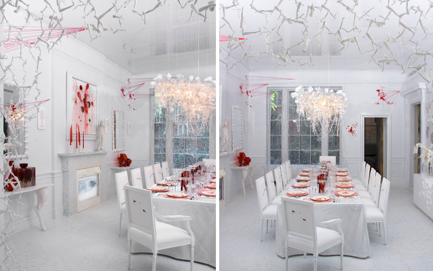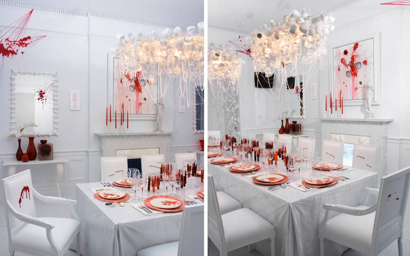 This diabolical dining room designed for the Metropolitan Home’s Showtime Showhouse took inspiration from the meticulous man at the center of the captivating series “Dexter”.