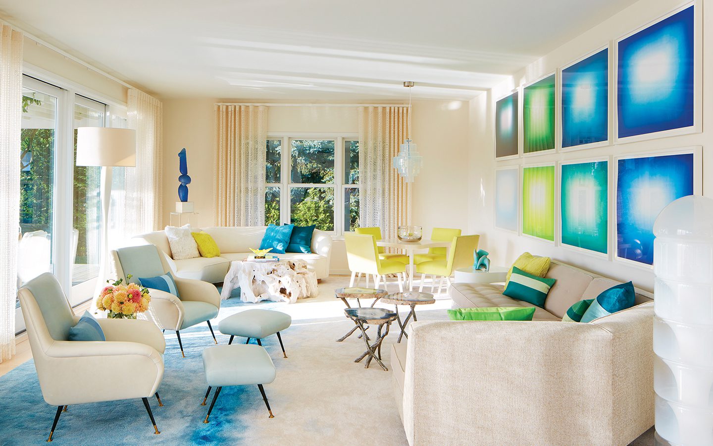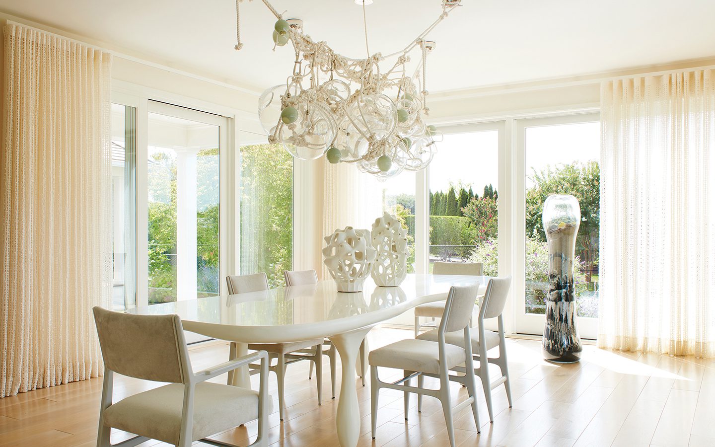 Warm and vivacious Hamptons residence designed for discerning art collectors harnesses the property’s natural light, adorned by exclusive, one of a kind pieces that create uniquely charismatic and unexpected spaces.